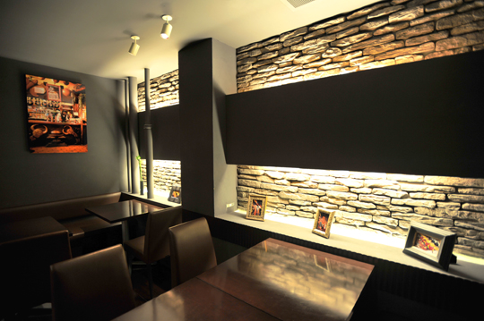 お店奥の暗い空間は色鮮やかなフランス写真を。