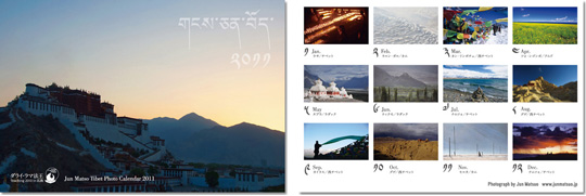 入口付近の白い壁にはさわやかなイメージとはミスマッチに思えるチベット写真を。