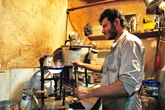 ゴーという音を立ててすごい火力で作られた一杯のシャイ・ハリーブ。