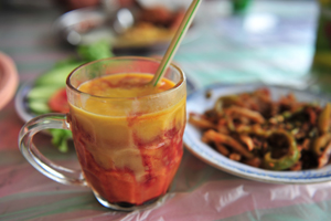 ちなみにフルーツジュース一杯150YR(60円)。これはどこの町でもほぼ同料金でした。