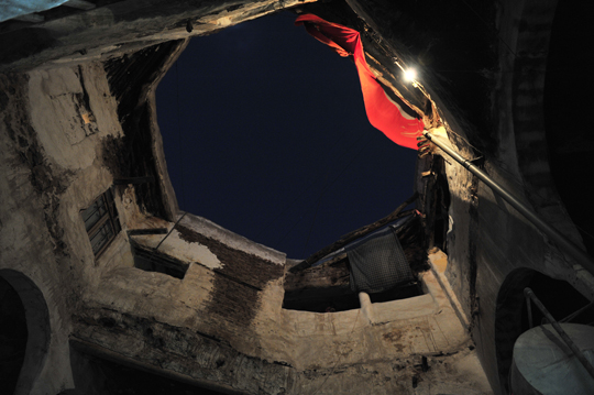 上を見上げると旧市街のひしめき合う建物が吹き抜けになっていて、夜空が見えた。