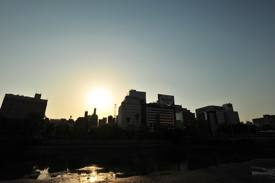 ゆっくりと流れる川と市内電車のガタゴトという音。
