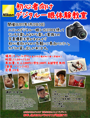 そんなD3100のコンパクトさに驚きを感じていたわけですですが、今回の教室が始まる寸前一人のコナンばりのお子様が(6歳くらいでしょうか?)