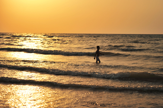 静かな浜辺で海と夕日とたわむれる子供たちを見ながらぼーっとするだけ。
