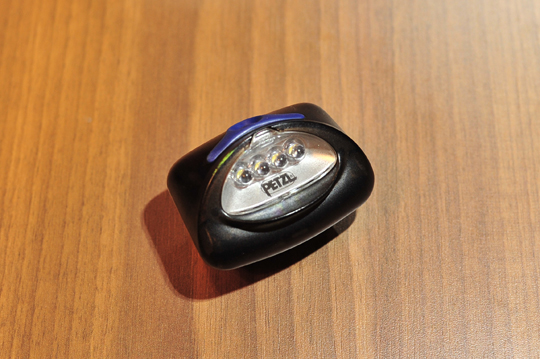 愛用しているPETZL(ペツル)のヘッドライト。巻き取り式でコードが収納。本当に大活躍。