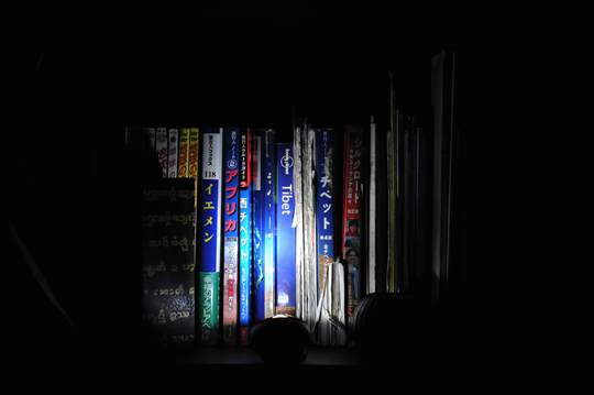 光の広がりがなく、一部だけ明るいです。本の束の端の方は暗いですよね。