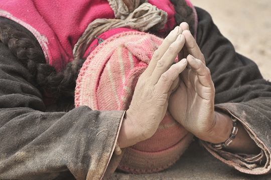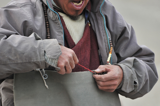 皆タンガ(数珠)やマニ車(中に経文の入った円筒型の宗教用具)を回しながら、真言を唱えていました。