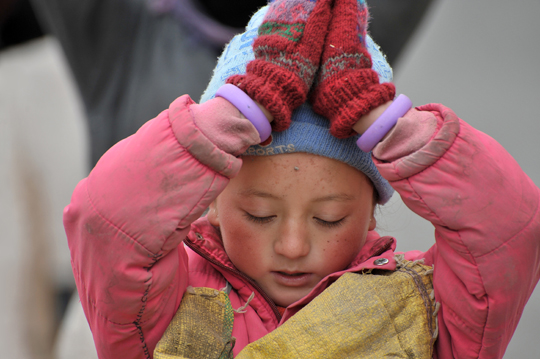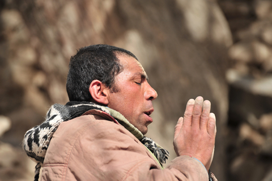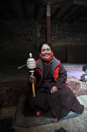 そして、そっと一人でマニ車を回し、お祈りを始めました。