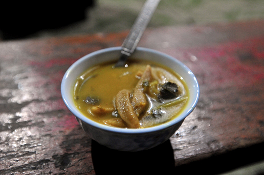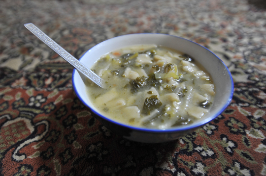 お茶を何杯も飲ませ、テントゥク(チベット風だんご汁)をふるまい。