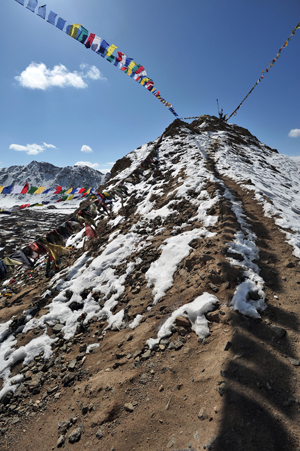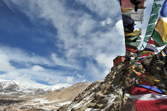 頂上のタルチョ(祈祷旗) ↑
