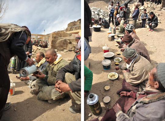 村人はそれにどれくらいの時間を費やすか把握していて、108回が終わる頃に合わせて運送用の車でやってきて、メンバーにお茶を振舞います。