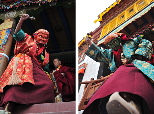 いろいろな仮面を付けた僧侶たちが登場、舞を披露します。