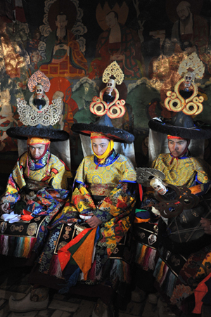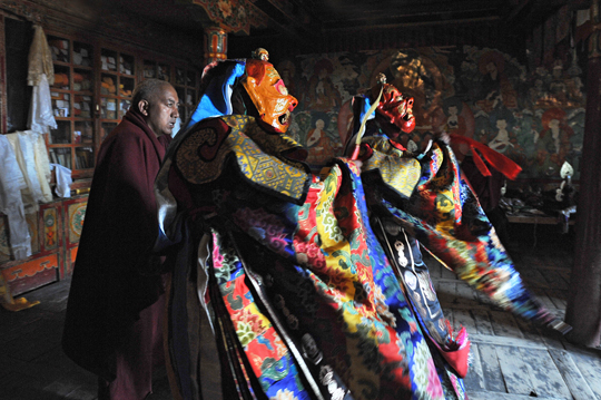 会場となるゴンパ(お寺)では僧侶たちによるチャム(仮面舞舞踊)が行われます。