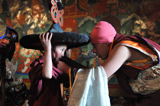 子供の僧侶たちはゴンパでの修行の中で、毎年のように先輩僧侶の華麗な舞を見て成長していくのでしょう。
