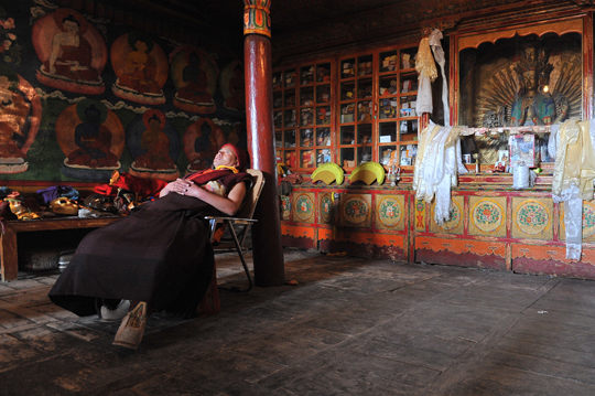 ゴンパ内を窓越しに覗くと。