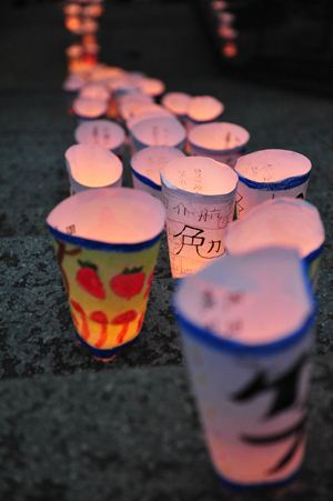 ぼんぼりには、尾道市内の保育園・幼稚園児や小中学校の生徒たちによって、将来の夢や願いを込めて絵が描かれていました。
