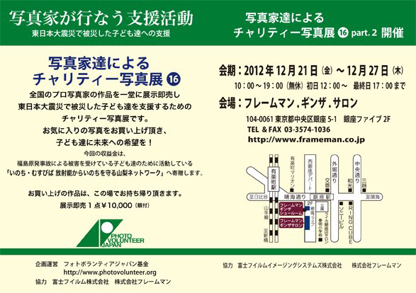 12月14~16日、東京ミッドタウンの富士フィルムフォトサロンで開催された「写真家たちによるチャリティー写真展」に行って来ました。