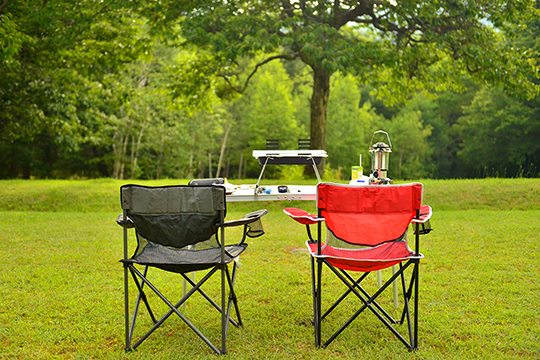 テントを張って、バーベキューの準備をして椅子でひと休憩。