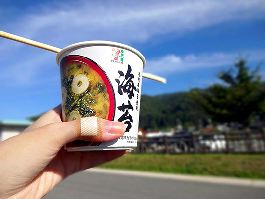 車を飛ばして道中のセブンイレブンに駆け込み、お湯をもらって駐車場脇で朝ごはん。
