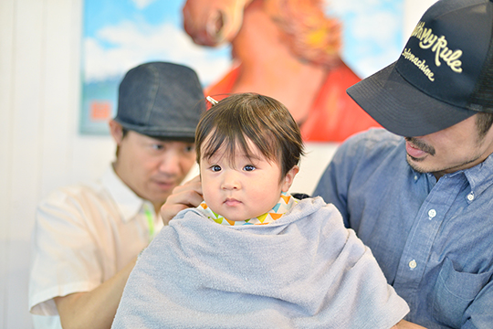 昔馴染みの大好きな美容師さんに切ってもらって、初めてのハサミは旦那が入れて。