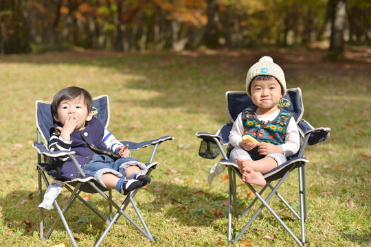 一丁前にアウトドアチェアに座って、かわいいこと。