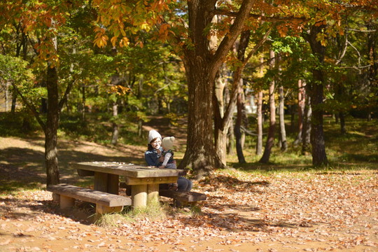 息子も少しは紅葉を満喫しただろうか。