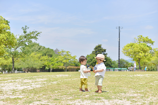 ほらキリンさんよ!ゾウさんよ!って言ってもちら見しかしてくれず。
