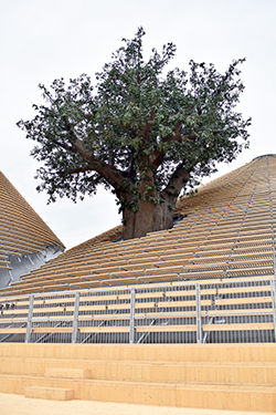 ホールを突き抜ける巨木。