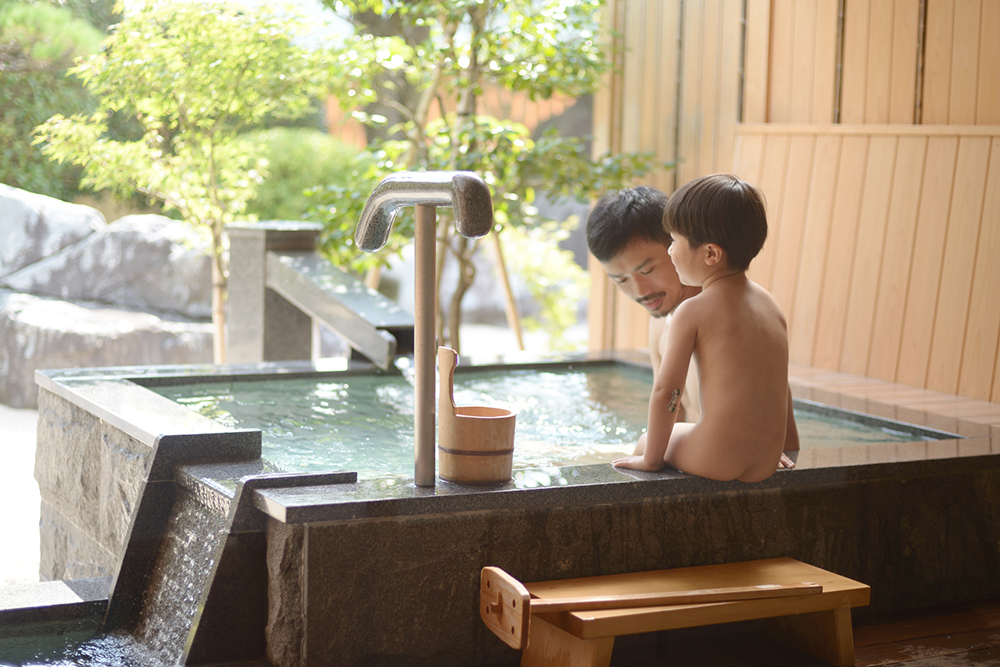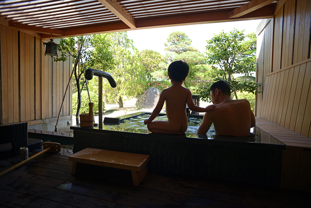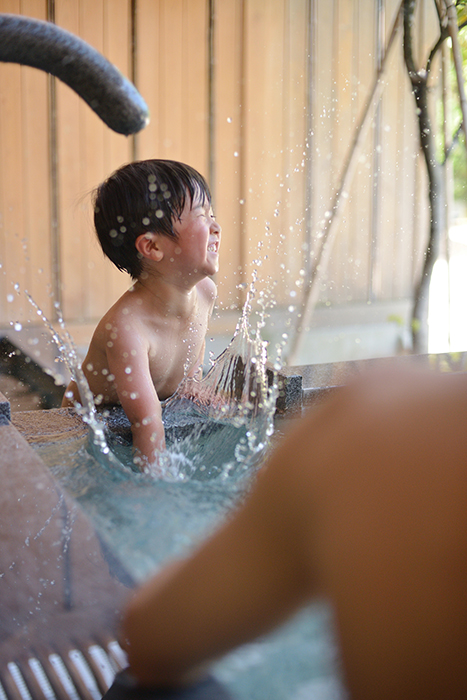 去年まで熱いお湯に泣いてた息子、今回は大はしゃぎで、家族の中で一番温泉に入ってました。