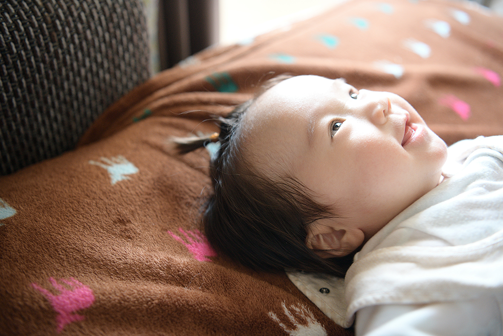 足の力だけで布団outして遥か彼方へ・・・今では寝返りもお手の物で、ま〜とにかくじっとしてないです(´-ω-`)