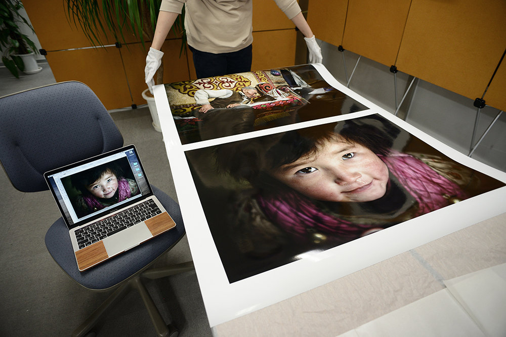 先日、本番プリントを見てきました。写真に特化したインクジェットプリント“カレイダ”。これで中間のサイズで、展示ではこれよりさらに大きいサイズもあります♪