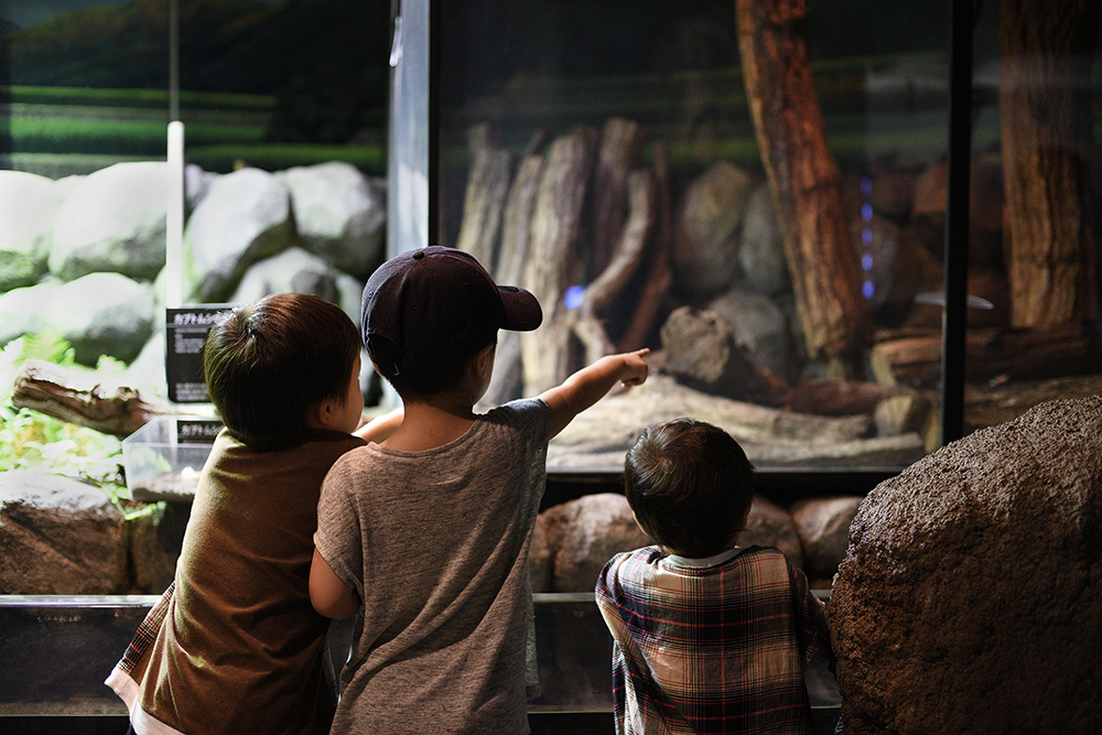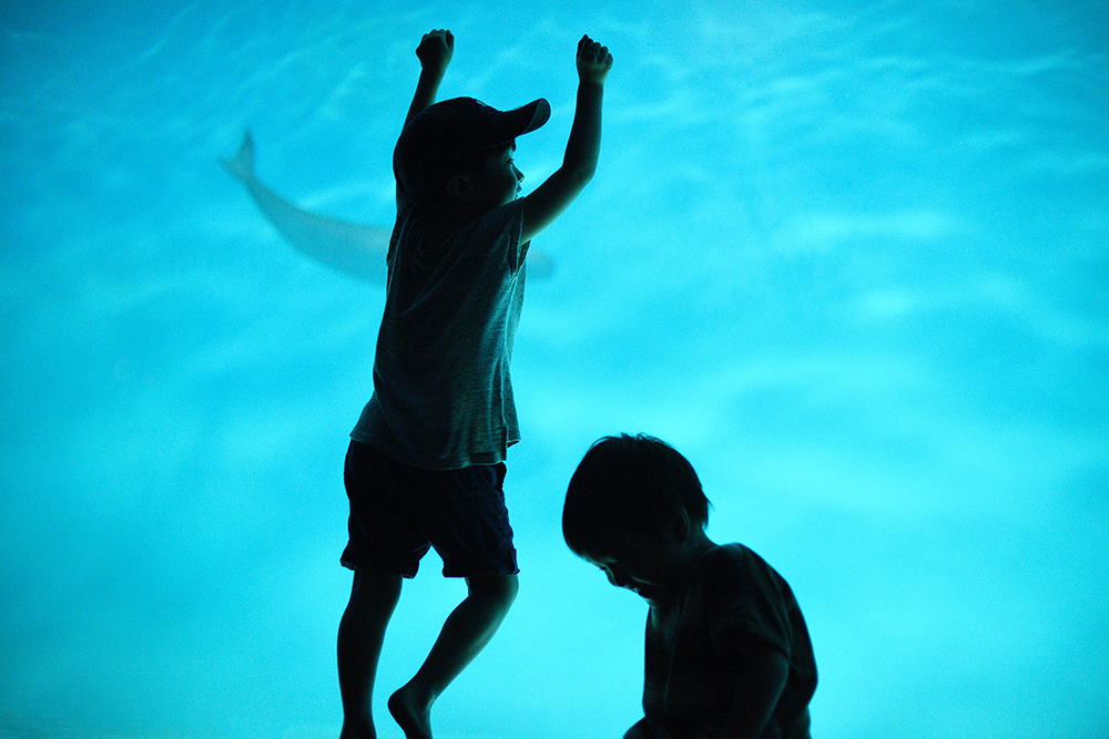 水族館に行って、スナメリの水槽で大はしゃぎ。ウミホタルを初めて見たり、
