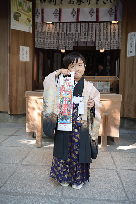 神社に入る時いきなり合掌。幼稚園のおかげで手を合わせるのがお上手。