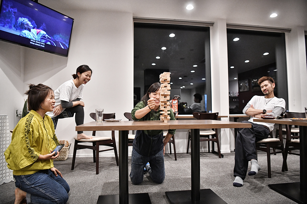 夜はPensione Unoのスタッフとジェンガ。お客さんを大切にしてくれるなぁ〜。
