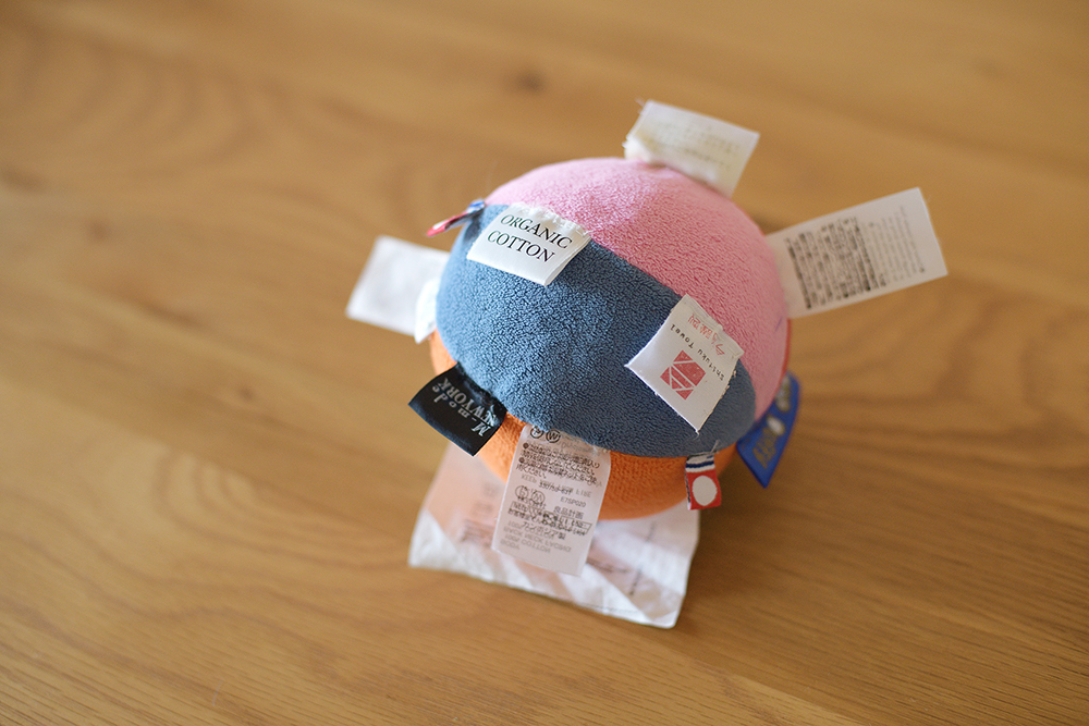 自家製タグボールを作って見ました。一石二鳥です。しかも、タグを舐める時に出まくるヨダレを、布製のボールが吸ってくれるという仕組み。