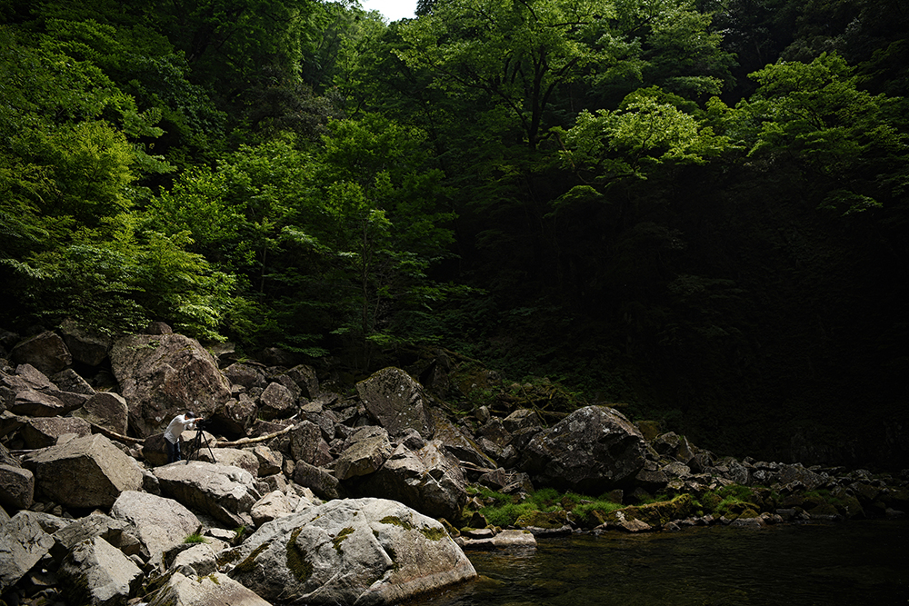 渡し船で二段滝へ渡り、そこで解散したのだけど、独りぼっち残って撮るという生徒さん。根性だなぁ、そういう気合い好きです(私は帰ったけどw)